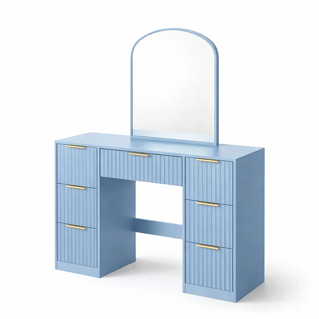 Coiffeuse en bois mdf bleu avec miroir et 7 tiroirs