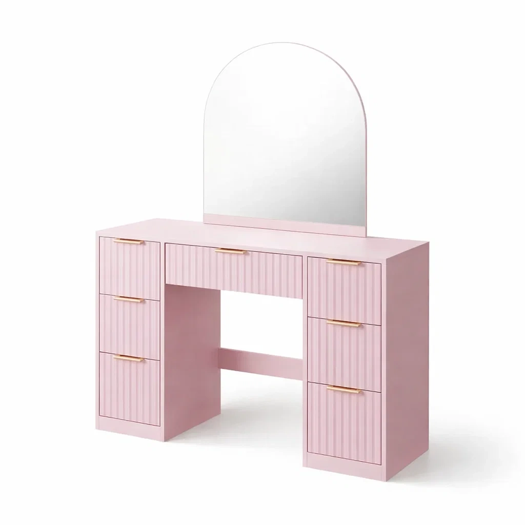Coiffeuse en bois rose avec miroir et 7 tiroirs
