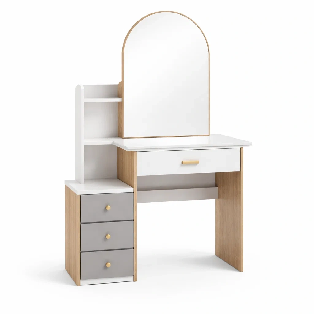 Coiffeuse en mdf avec miroir arqué blanc chêne gris